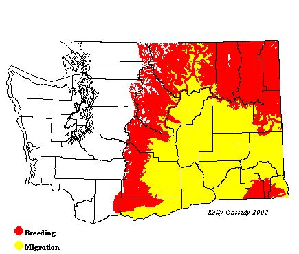A summer visitor to eastern Washington, the Red-naped Sapsucker is common from April through mid-August throughout the forested and riparian zones of eastern Washington. A few linger into early September. They are also rare breeders at high elevations just west of the Cascade crest. There are a few questionable winter records from western Washington, and any winter sighting of a Red-naped Sapsucker should be closely scrutinized because the apparent Red-naped Sapsucker may in fact be a Red-breasted Sapsucker hybrid.